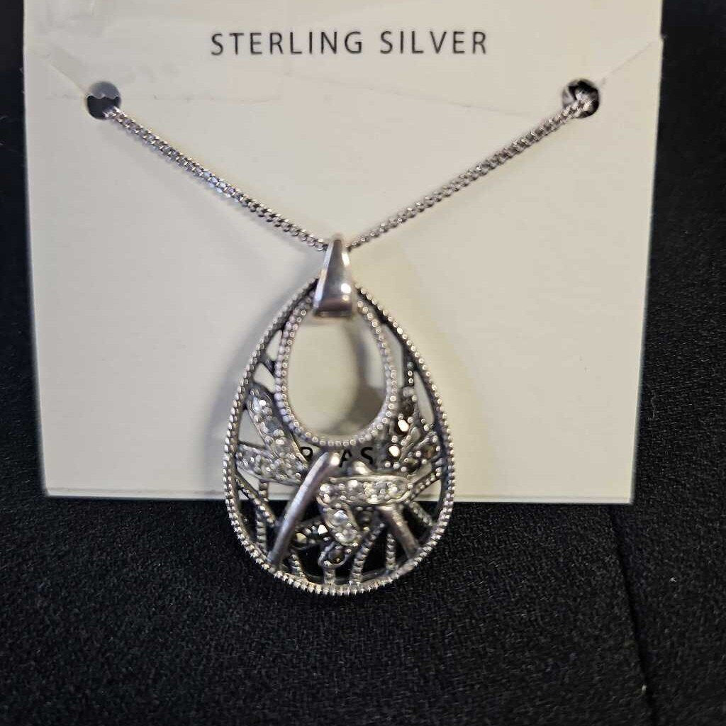 Sterling silver with silver/rhinestone pendant