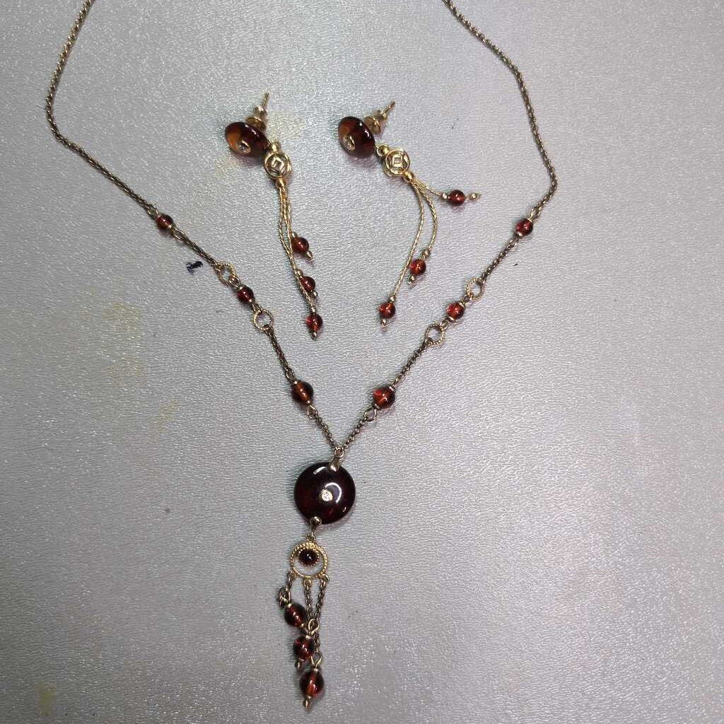 n/a Necklace & Earring Set 2" Drop Earrings & 16" Chain Goldtone & Amber Color