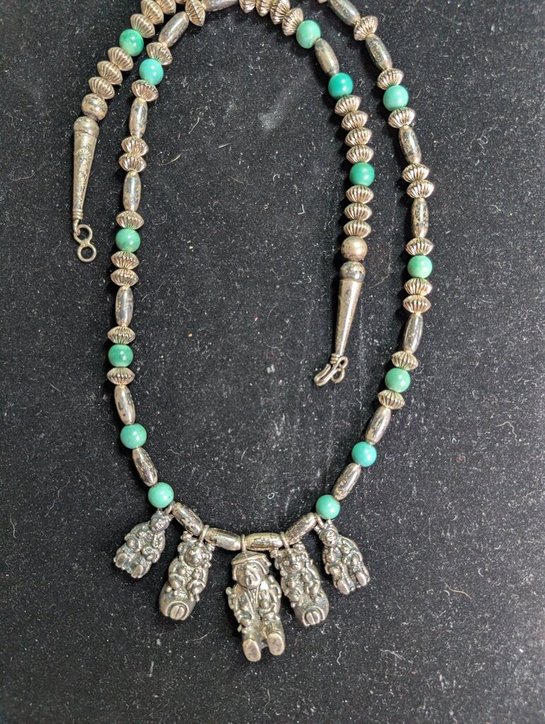 .925 w/Turquoise Beads w/ 5 Figures Storyteller Necklace
