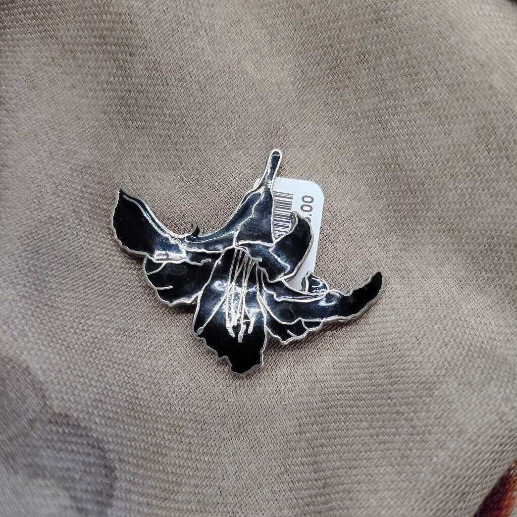 No label Black Orchid Pin 2 x 1.25" Silvertone Black