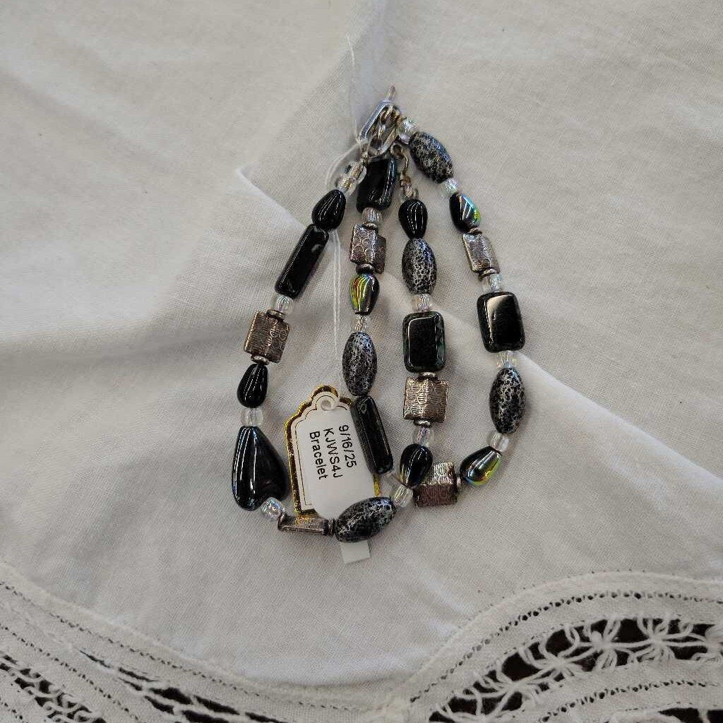 Double strand grey, black, and silver beaded bracelet with sterling, marked 925, clasp.