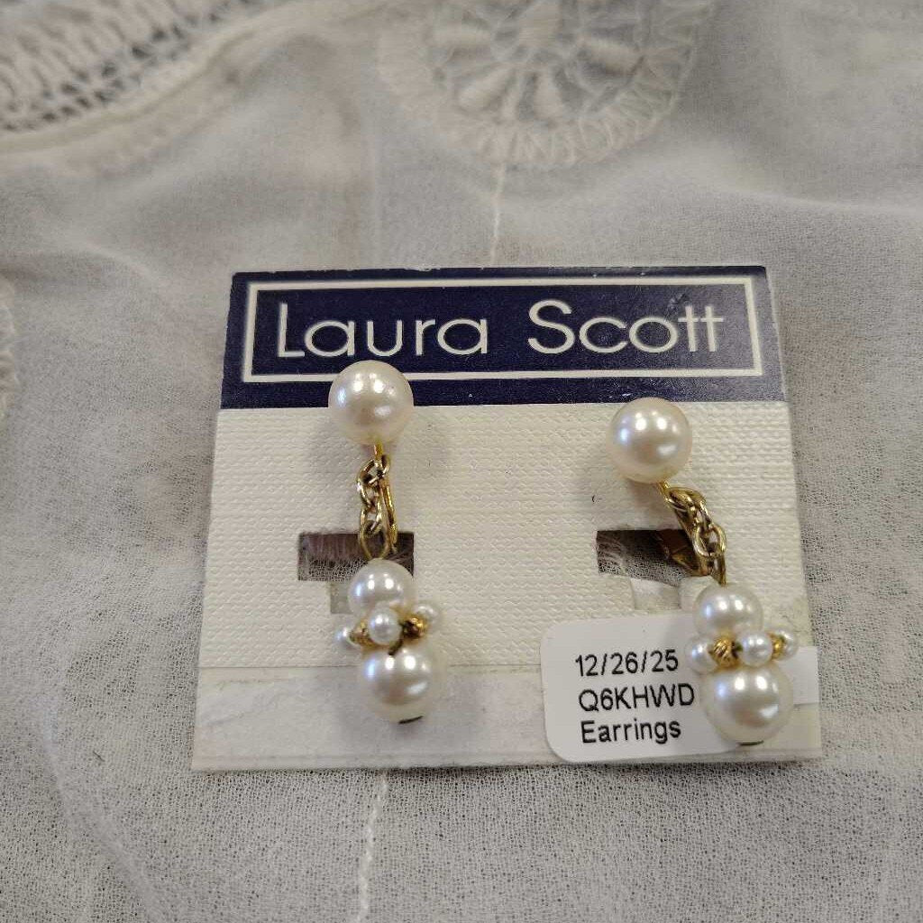 No label Earrings 1.75" Gold Tone Pearl