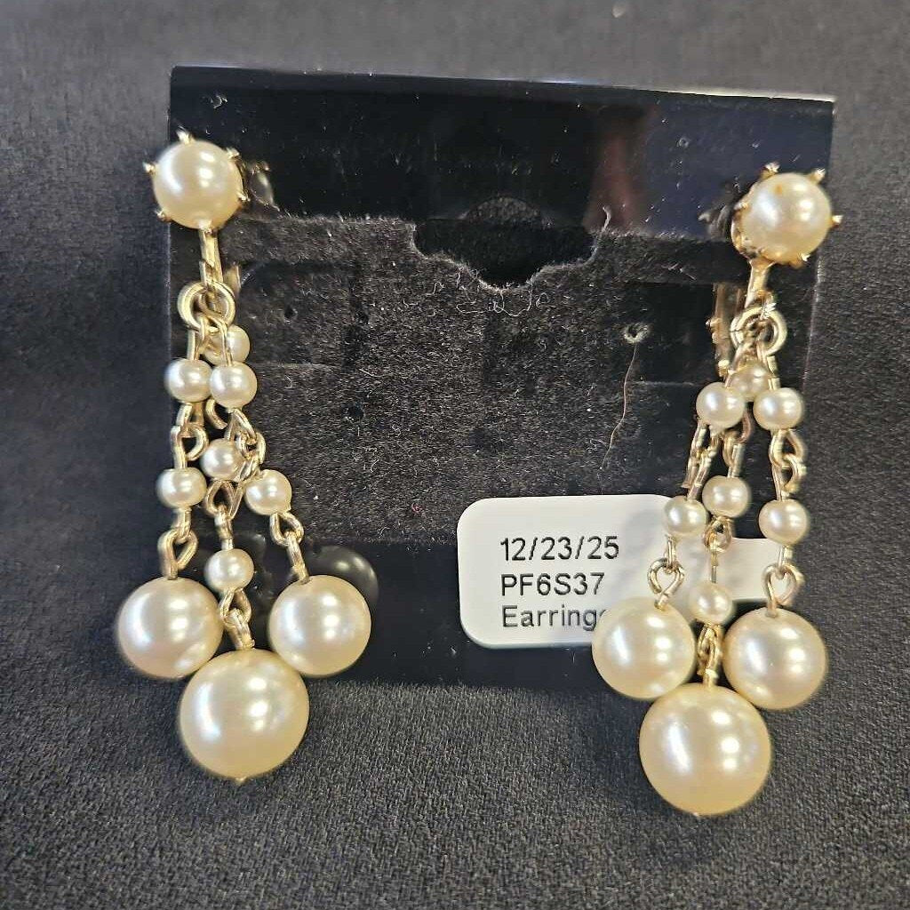 No label Earrings 2" Gold Tone Pearl