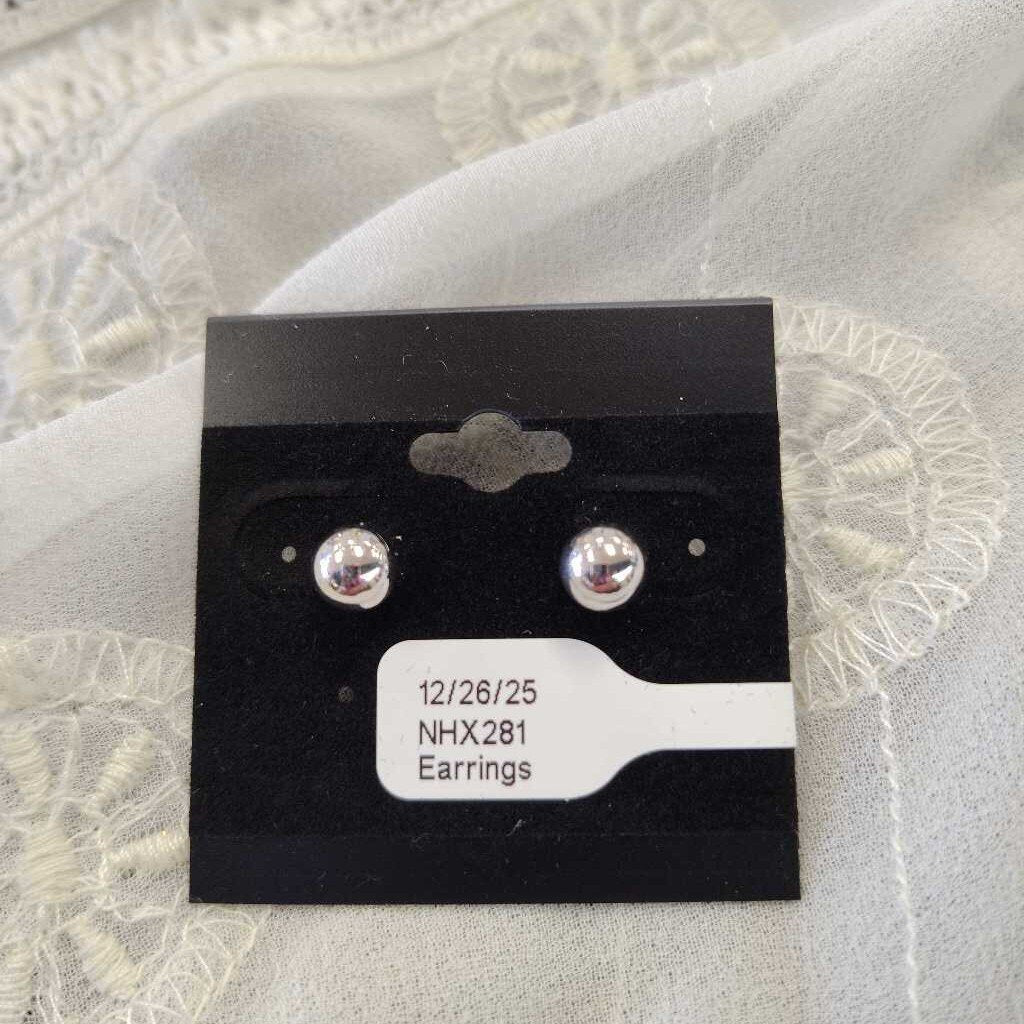 Small silver tone full ball stud pierced earrings.