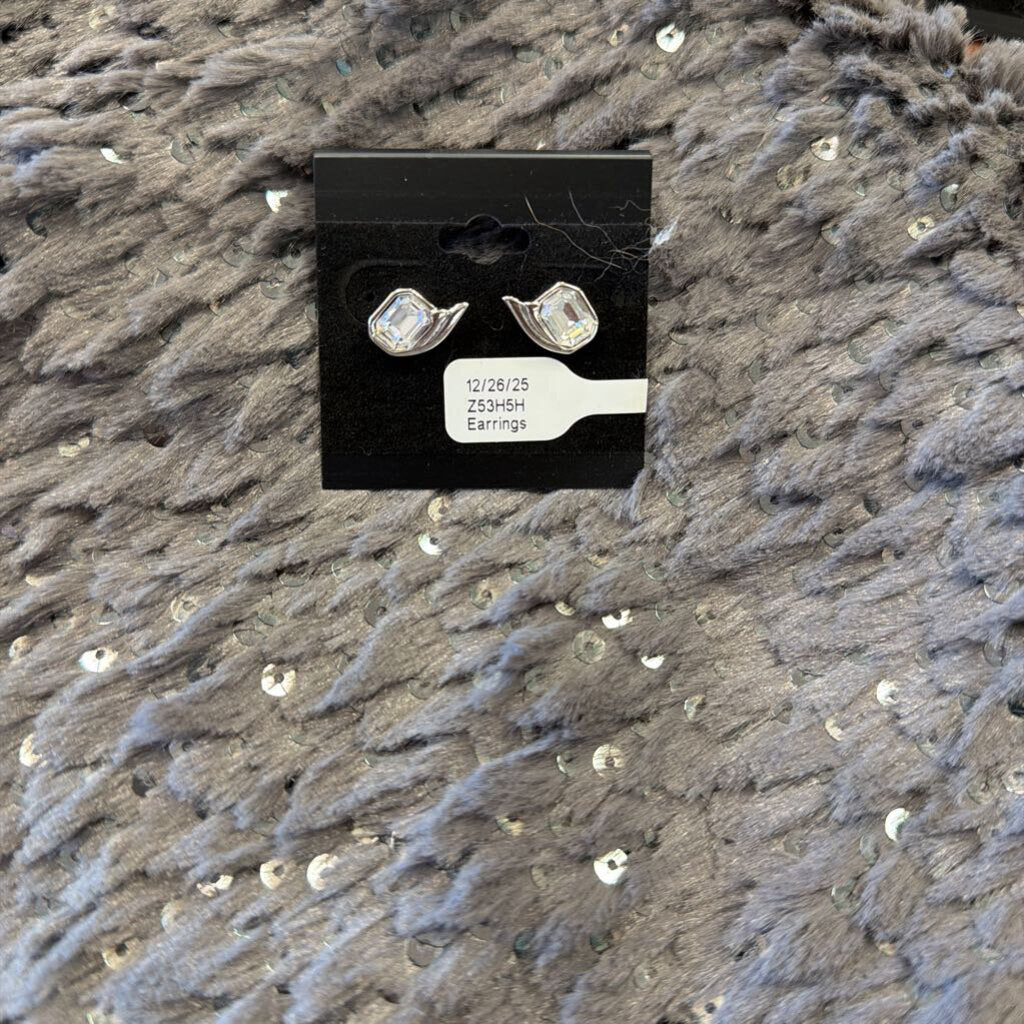 Silver tone and square rhinestone stud pierced earrings.