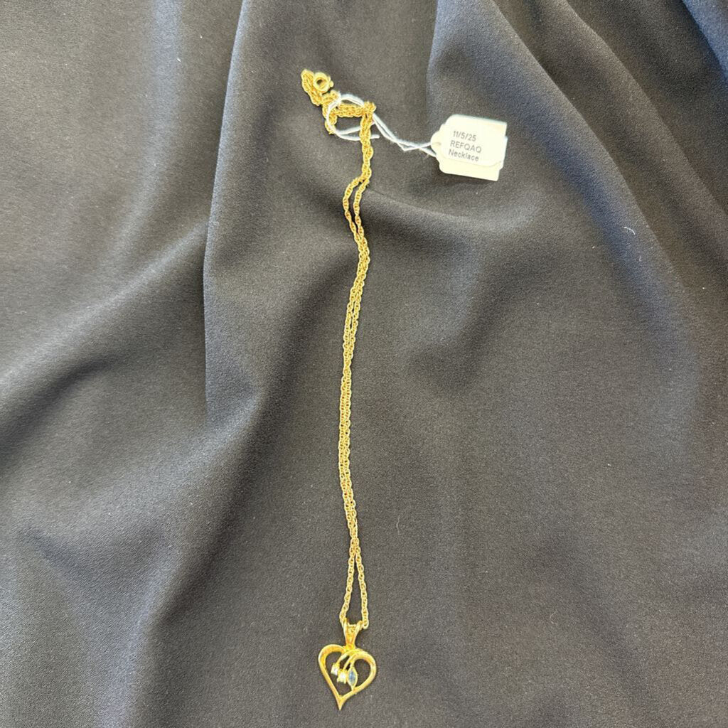 Gold tone chain with heart and 2 rhinestones and 1 green stone
