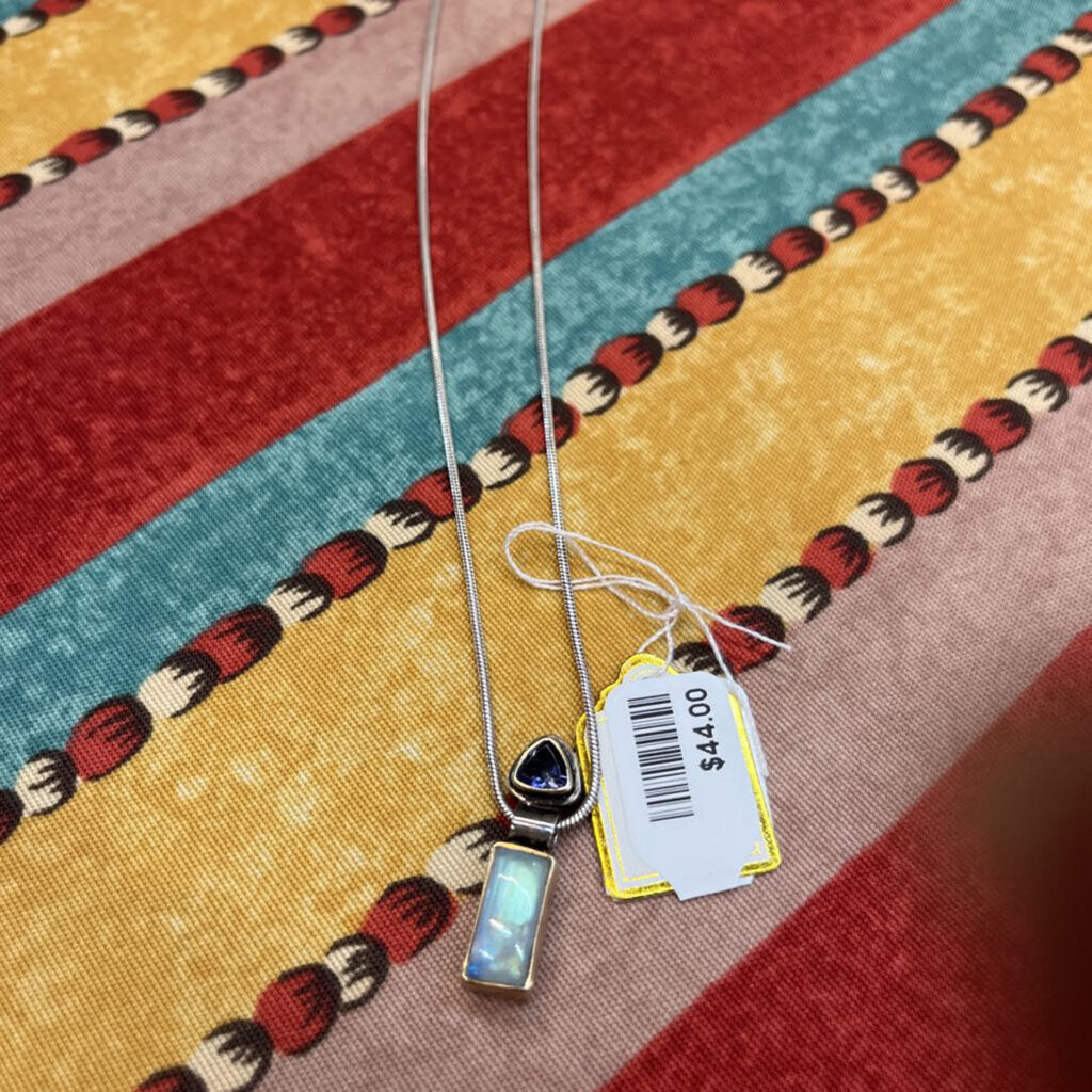 Sterling silver , moonstone (?) rectangles with lolite (?) triangles - gems suggested by consignor