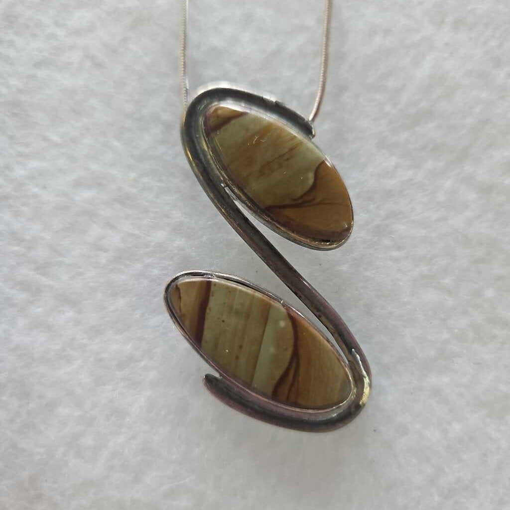 D. Sterling silver chain with sterling silver picture jasper pendant.