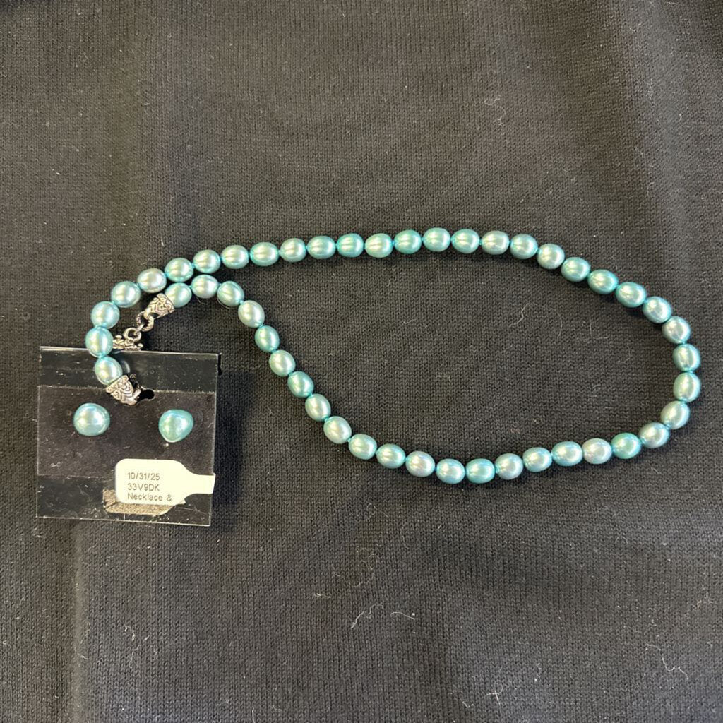 No label Necklace & Earring Set 64" Aqua