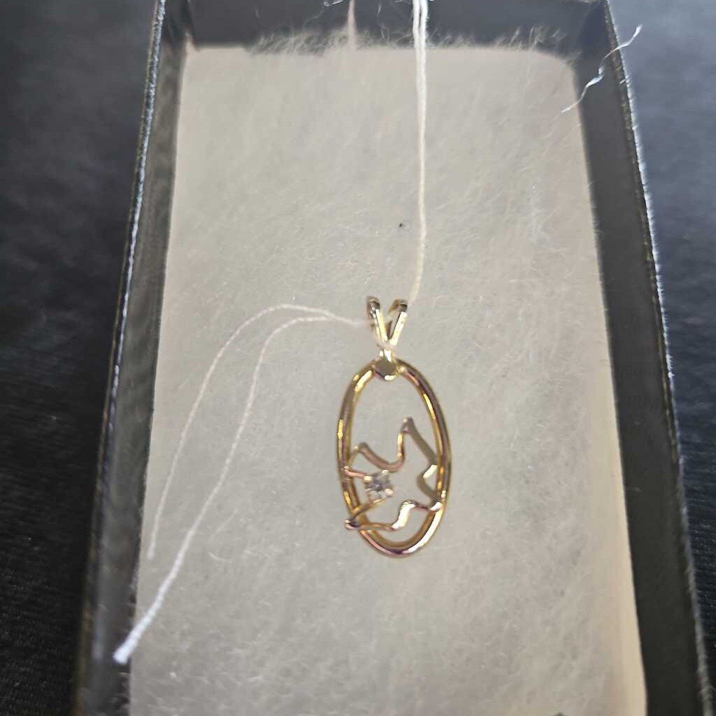 Silver tone Holy Spirit peace dove pendant with rhinestone accent.