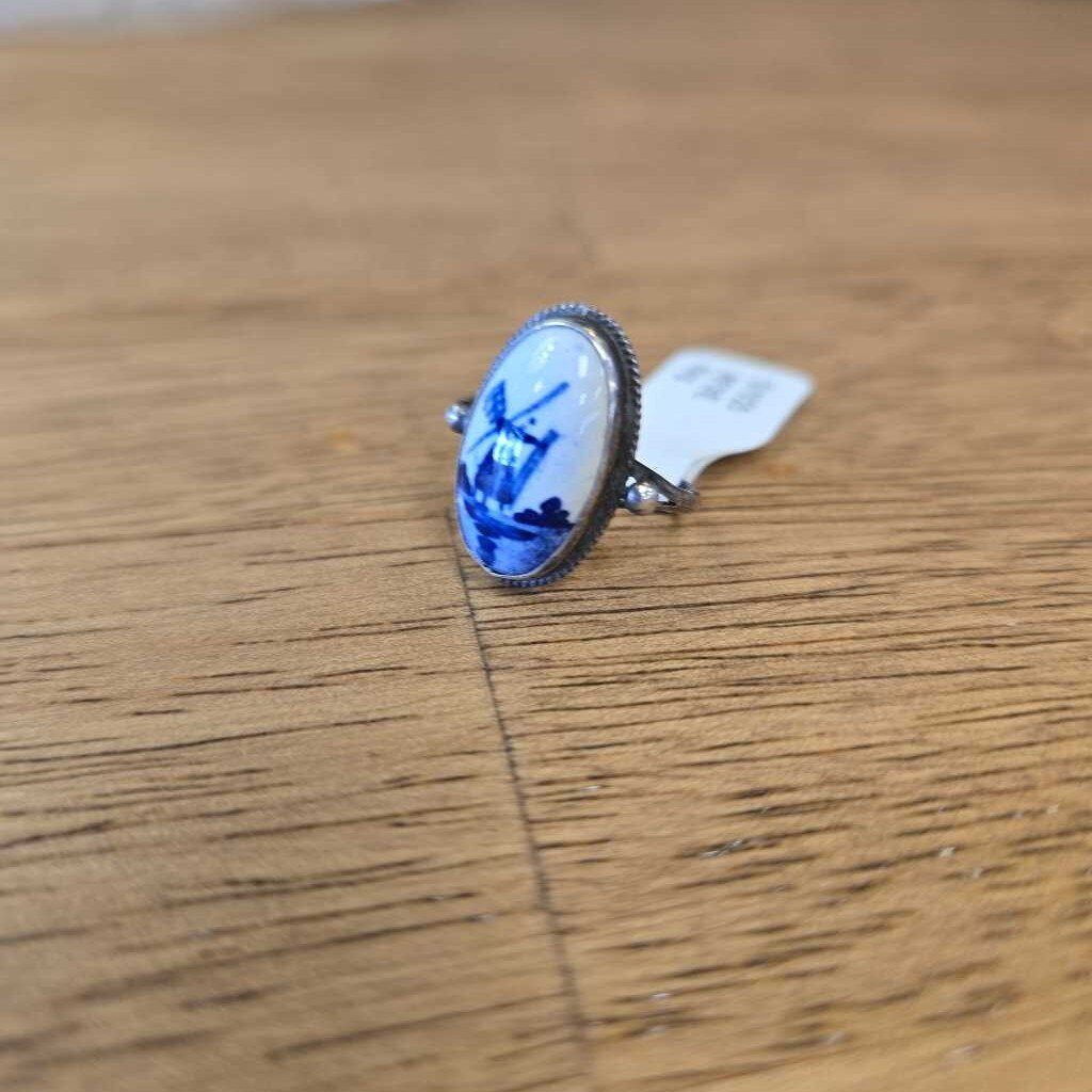 A. Old vintage sterling silver and blue and white windmill ring.