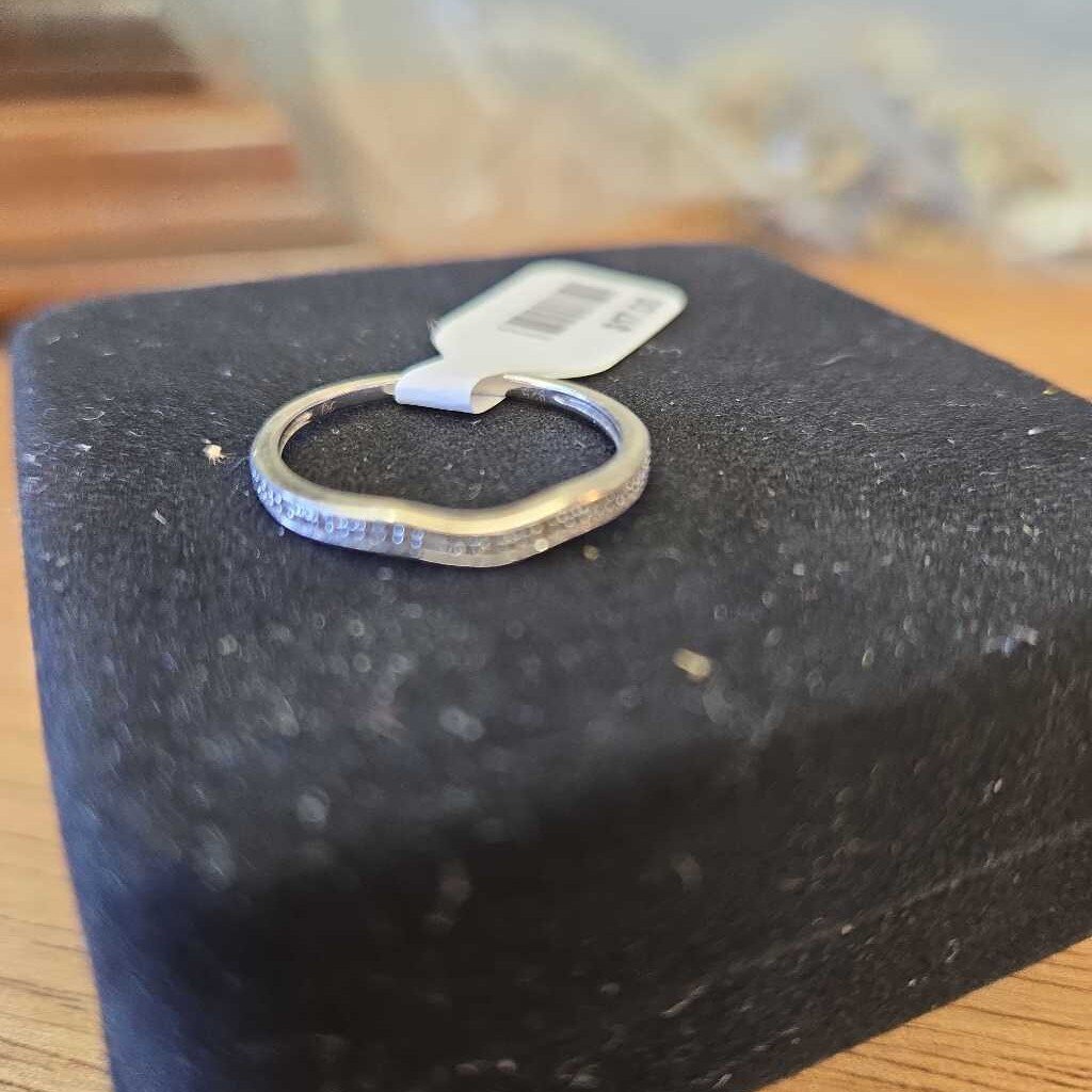 Tiny sterling silver 925 band ring with rhinestones at front.