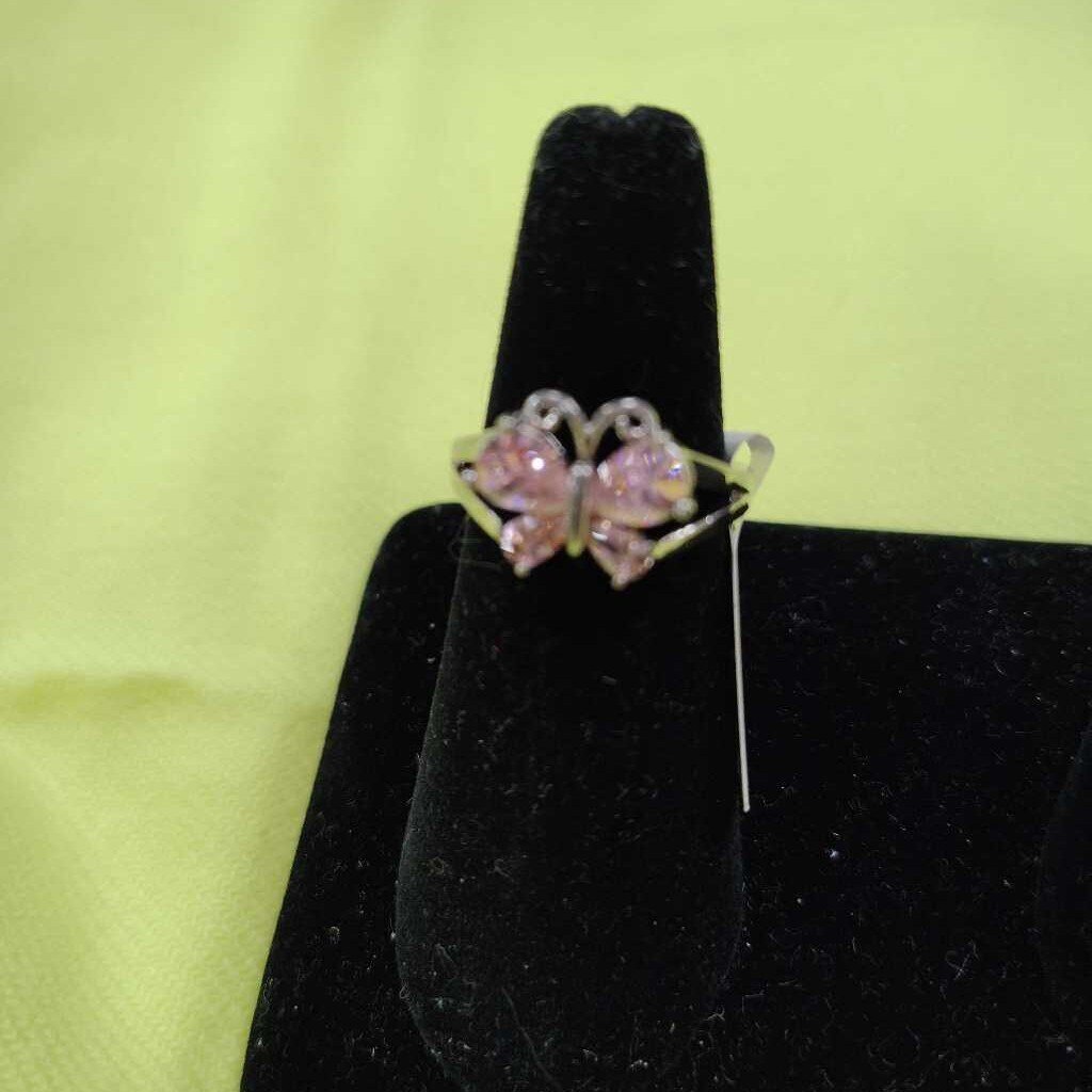 Butterfly sterling silver ring, marked 925, with pink faceted stones.