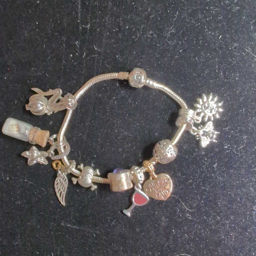 Pandora Bracelet Medium Silvertone w/Accents