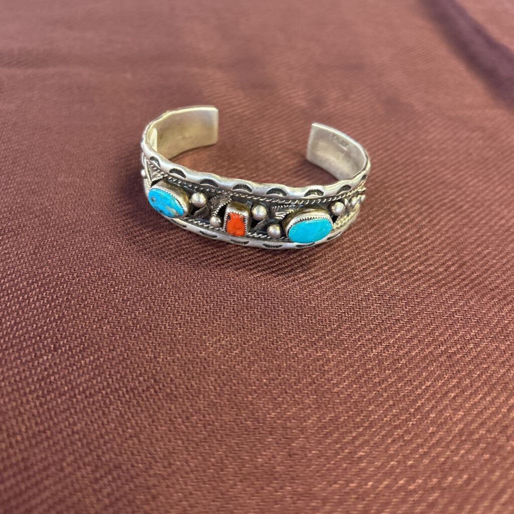 Heavy vintage 925 sterling silver and native natural stones including turquoise.