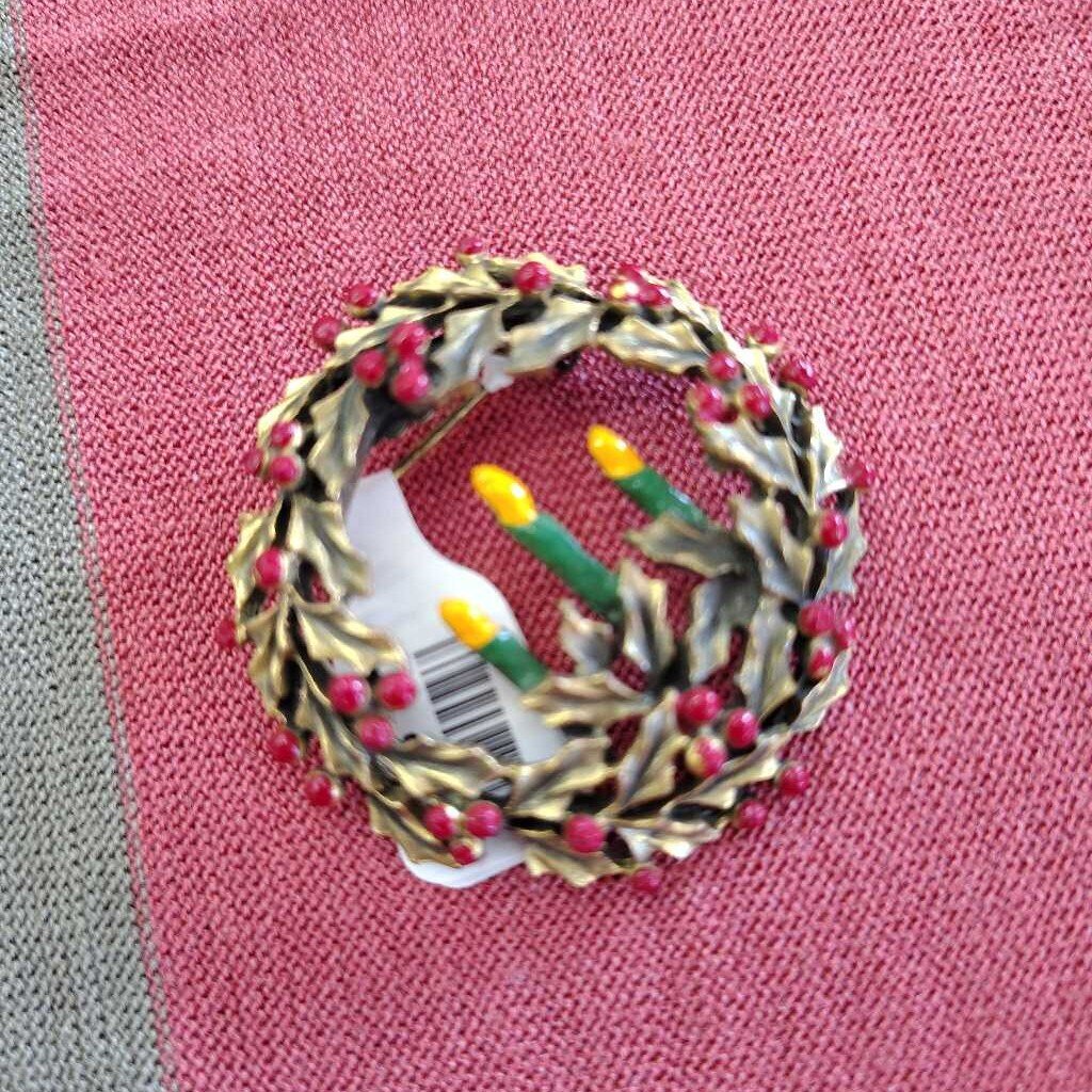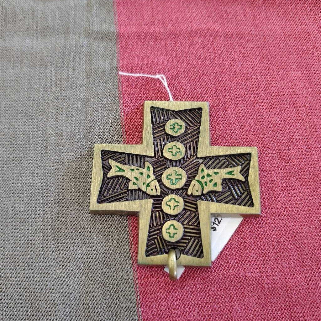Franklin Mint Brooch 2 1/4" Goldtone Multi