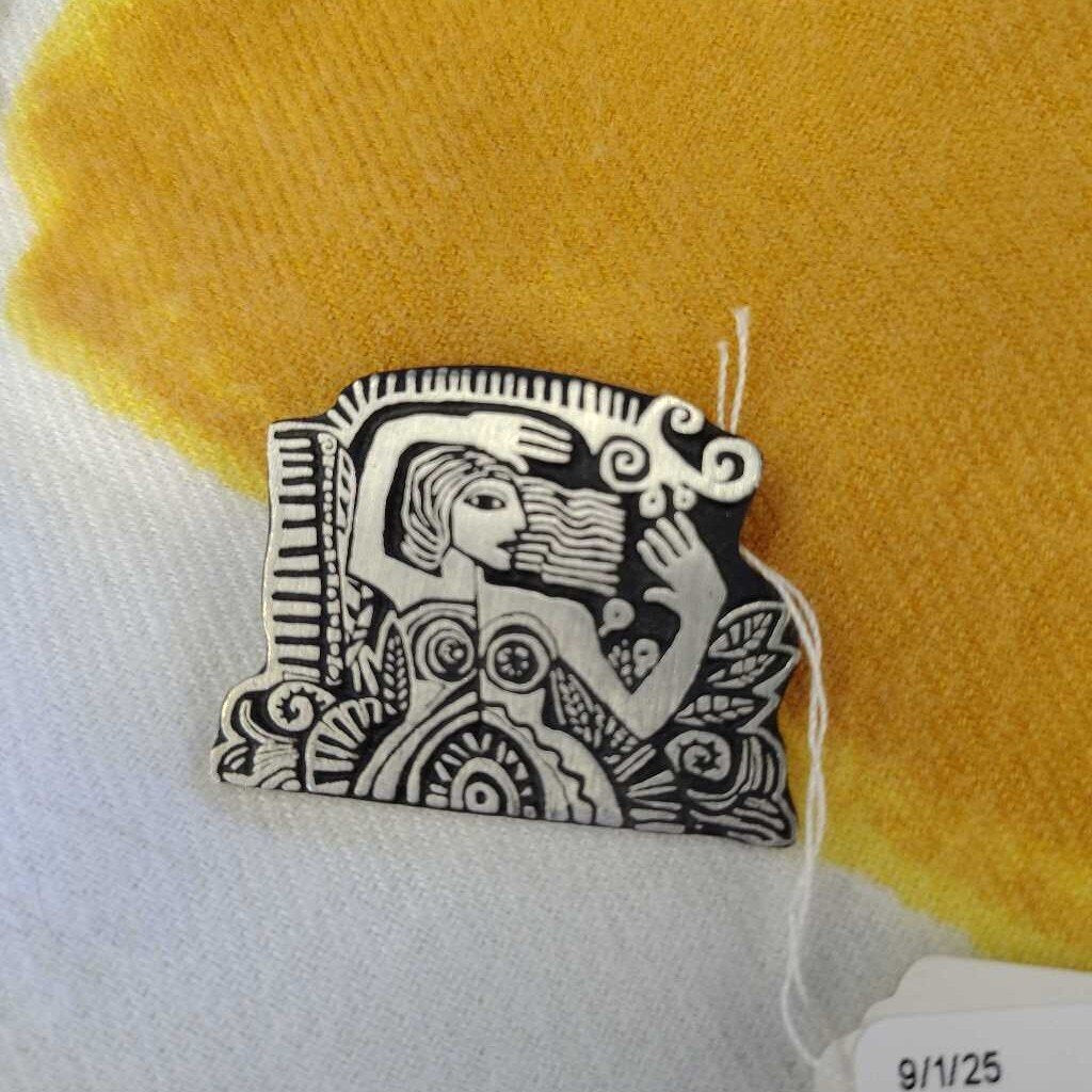 Alice Seely Brooch 1 3/4" Black and Silvertone