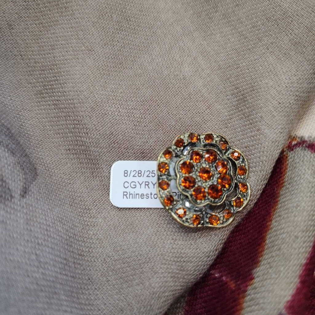 No label Rhinestone Pin 1 x 1" Amber Goldtone