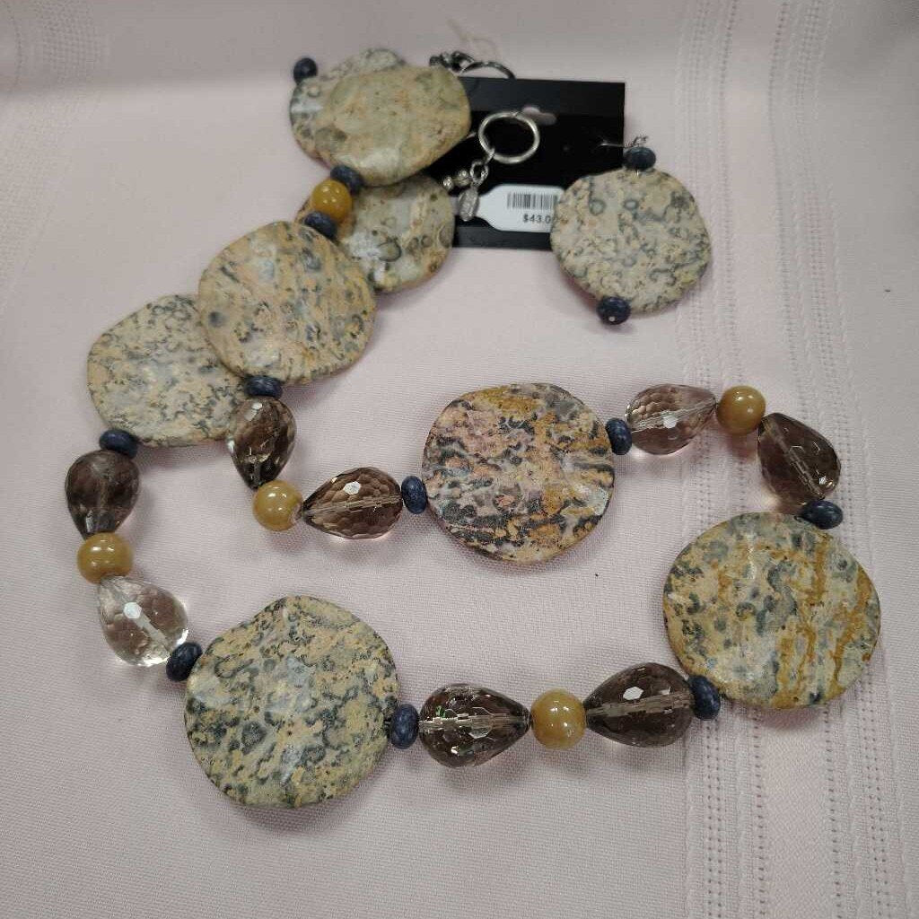 No label found Necklace/earrings Set of 2 Gray cream orange clear