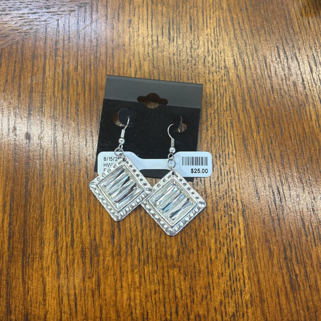 Karine Sultan Earrings 1" sq. Silver and Clear