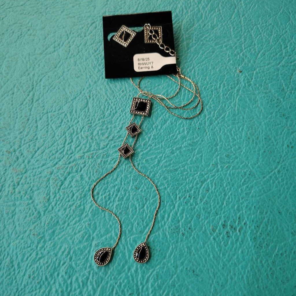 No label Earring & Necklace Set 3 Piece Set Silvertone Black