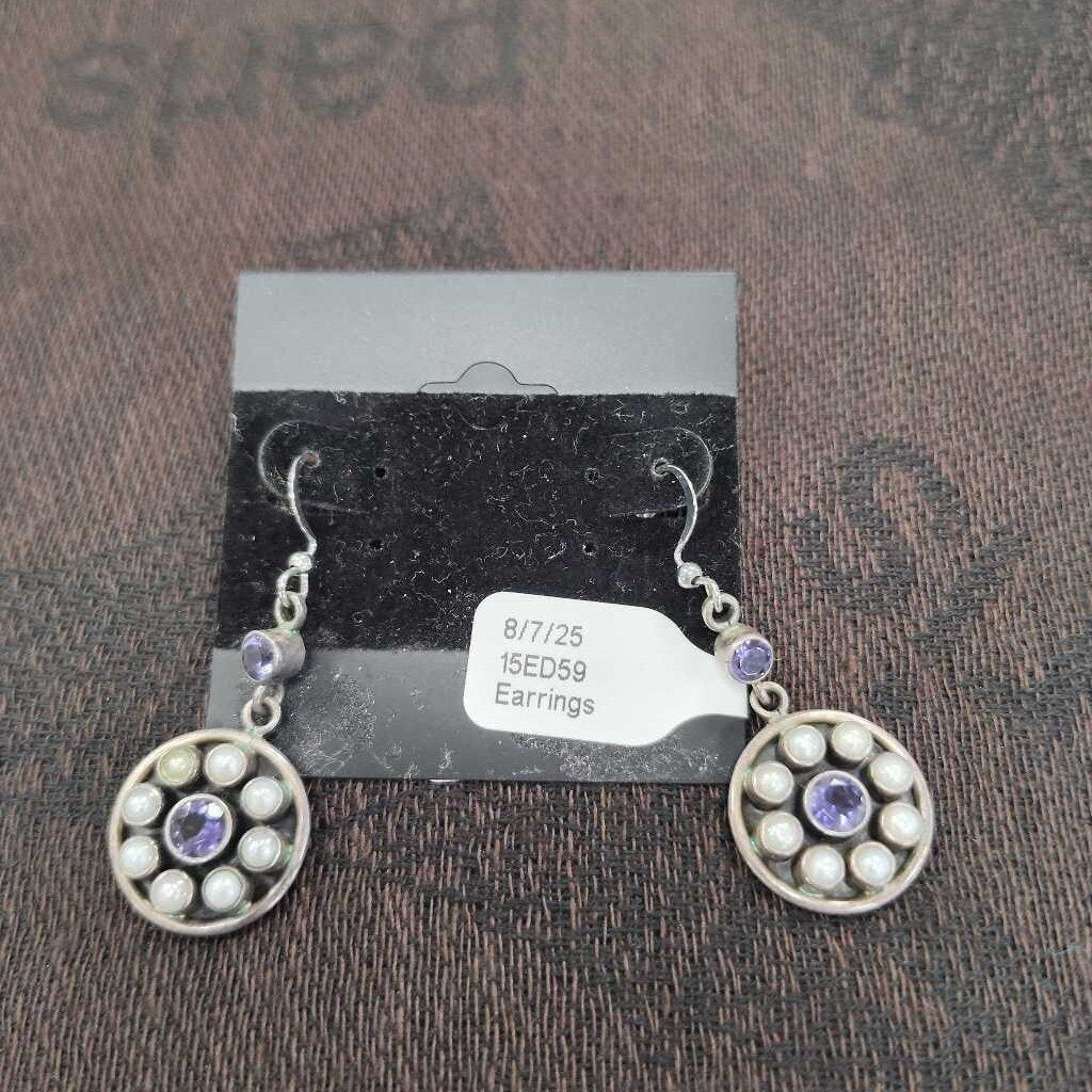 No label Earrings 2" Sterling Purple