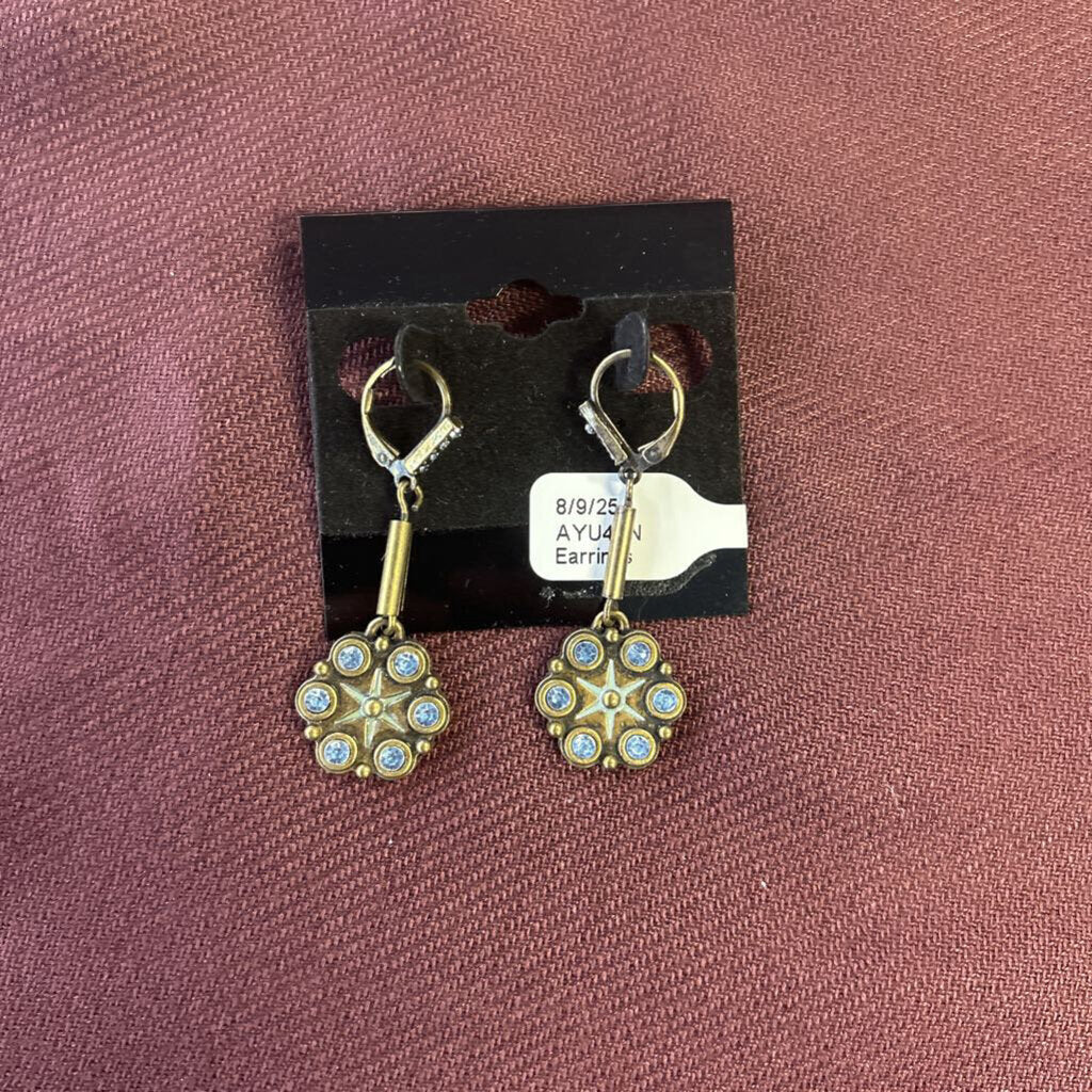 Jewelmint Earrings 2" Antique Gold Blue