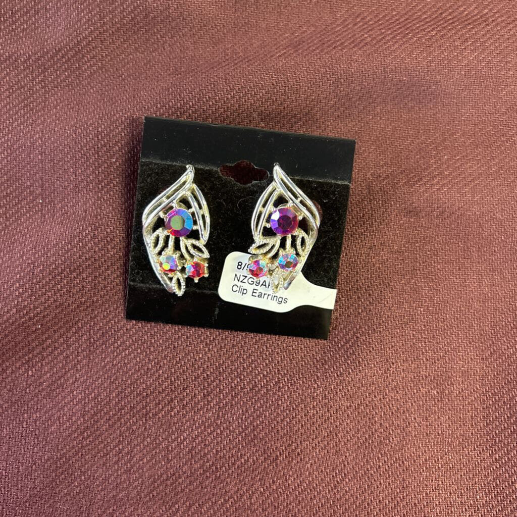 No label Clip Earrings 1" Silvertone Red