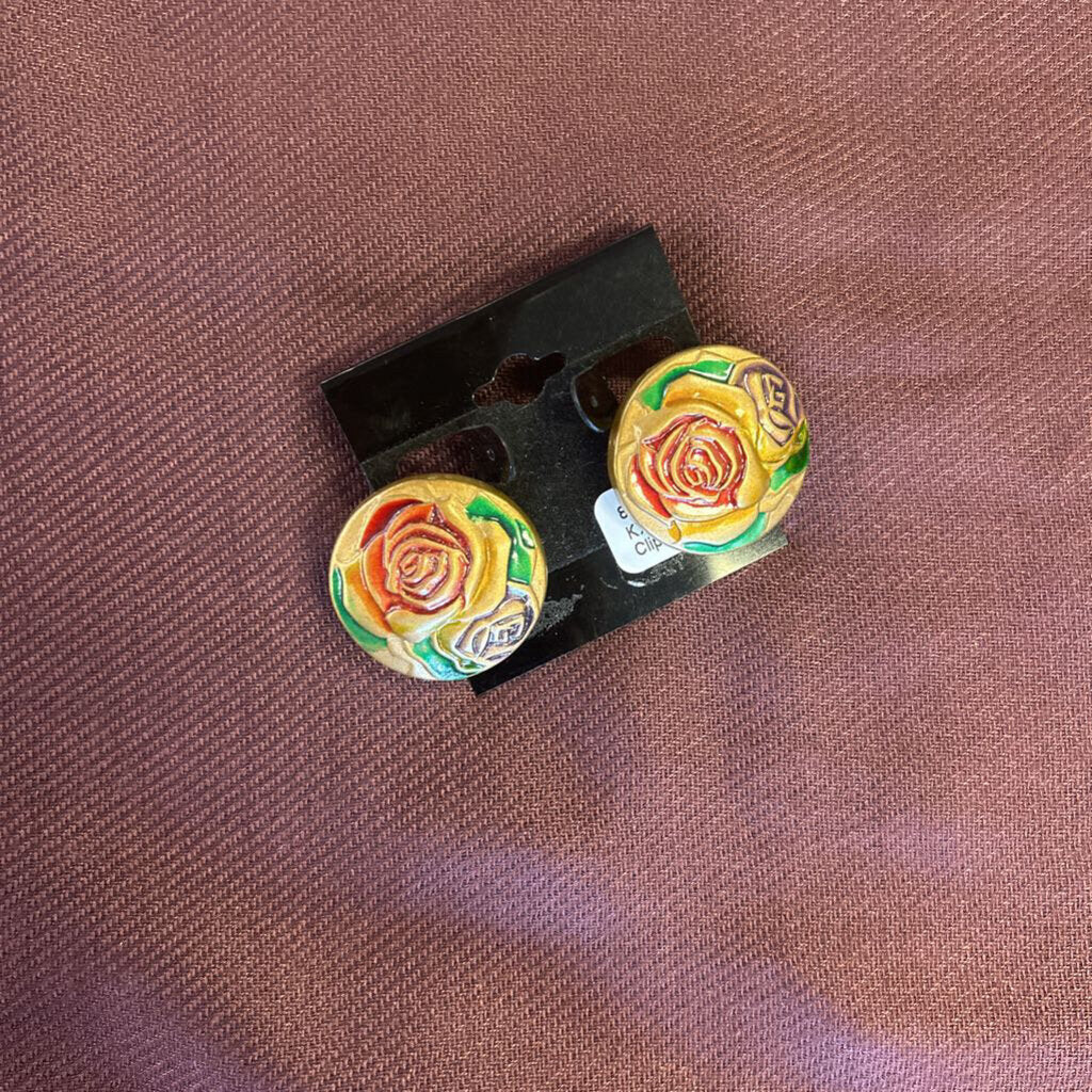 No label Clip Earrings 1" Goldtone Red