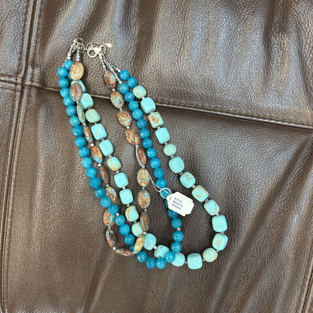 No label Necklace 20" Blue and Brown