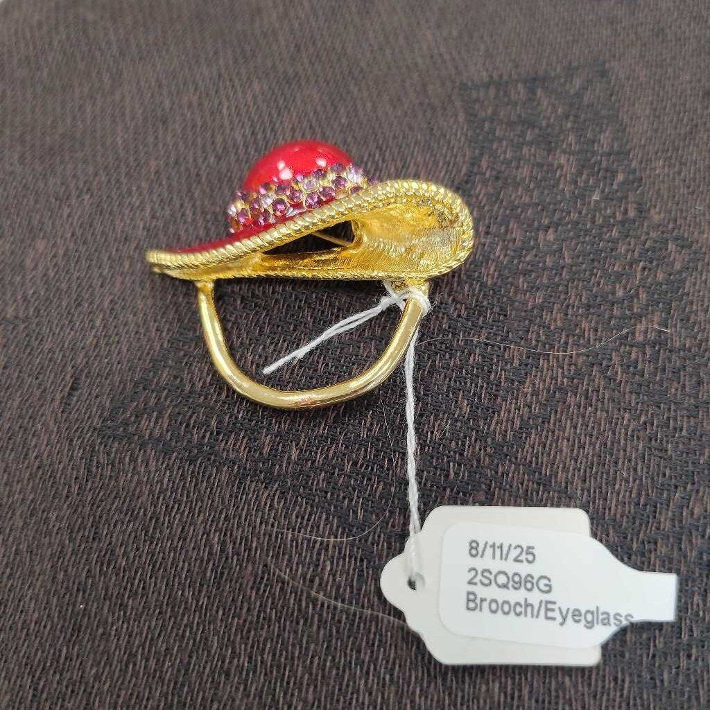 No label Brooch/Eyeglass Holder 1 1/2" Red and Gold