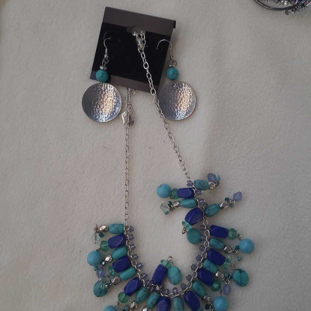 No label Necklace & Earring Set Set of 3 Silvertone Turquoise
