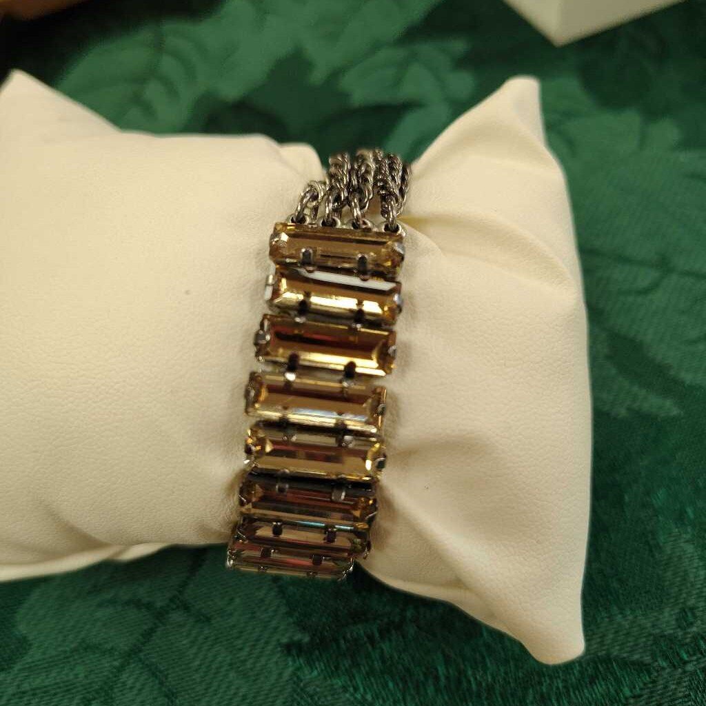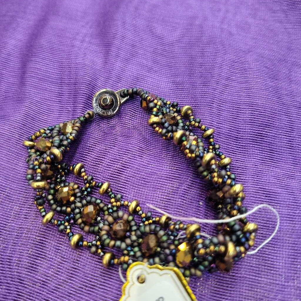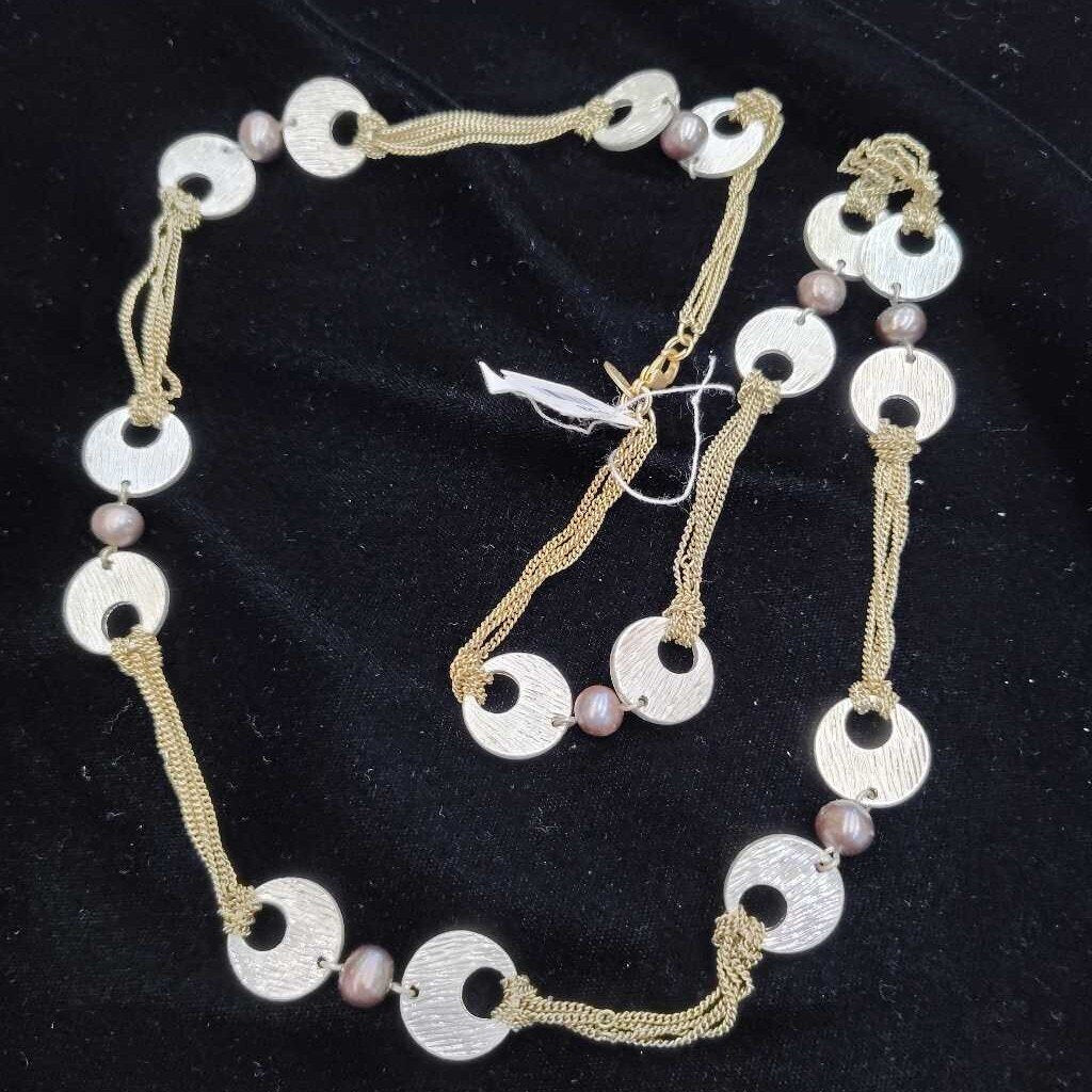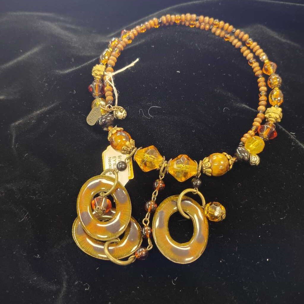 Treska Necklace 4" Ant. Gold, Green, Yellow