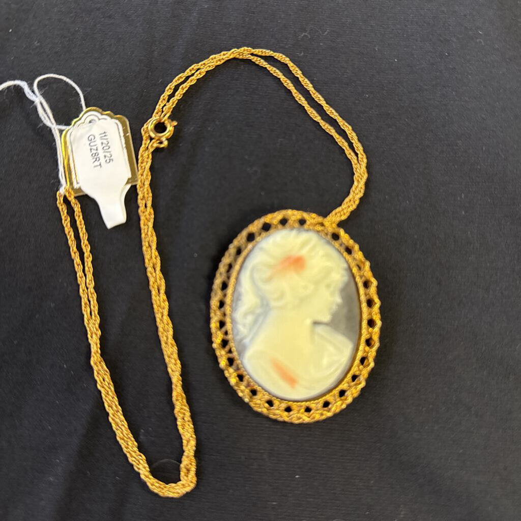 No label found Cameo Pendant Necklace 13.5" L x 1.5" W Gold/ivory/black