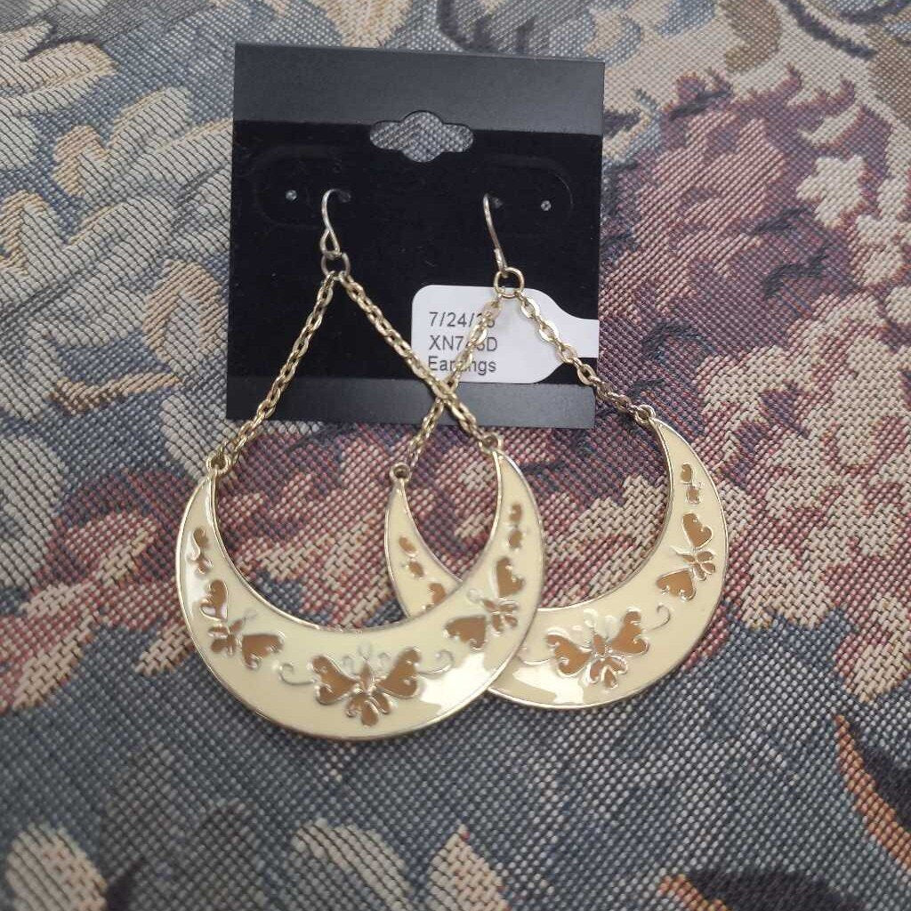 No label Earrings 2.75" Goldtone Ivory