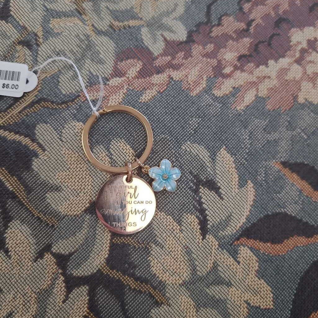 No label Keychain 2" Goldtone Blue