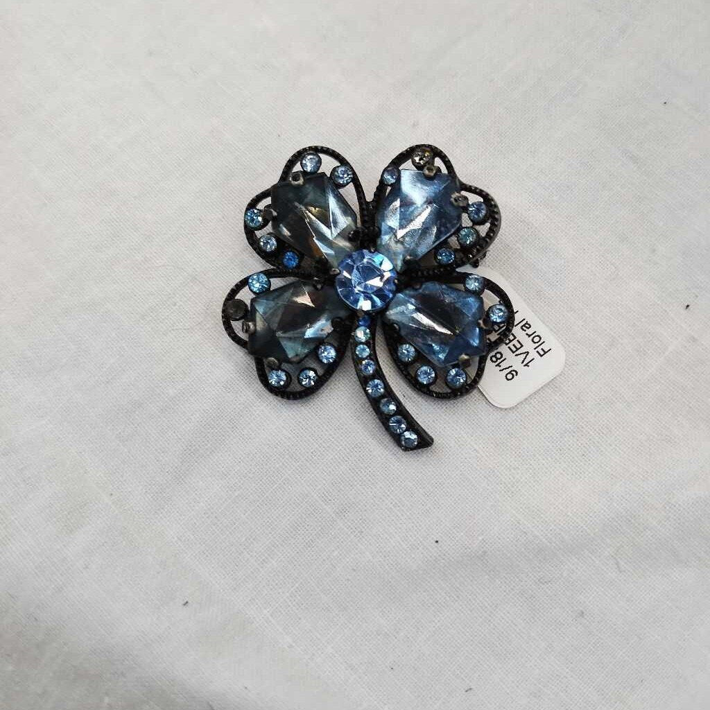 Weiss Floral Pin 2" Blue