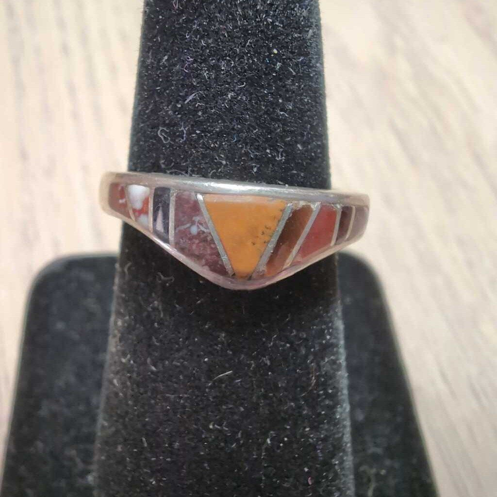 925 w/Inlay Ring About 8 Silver & Browns