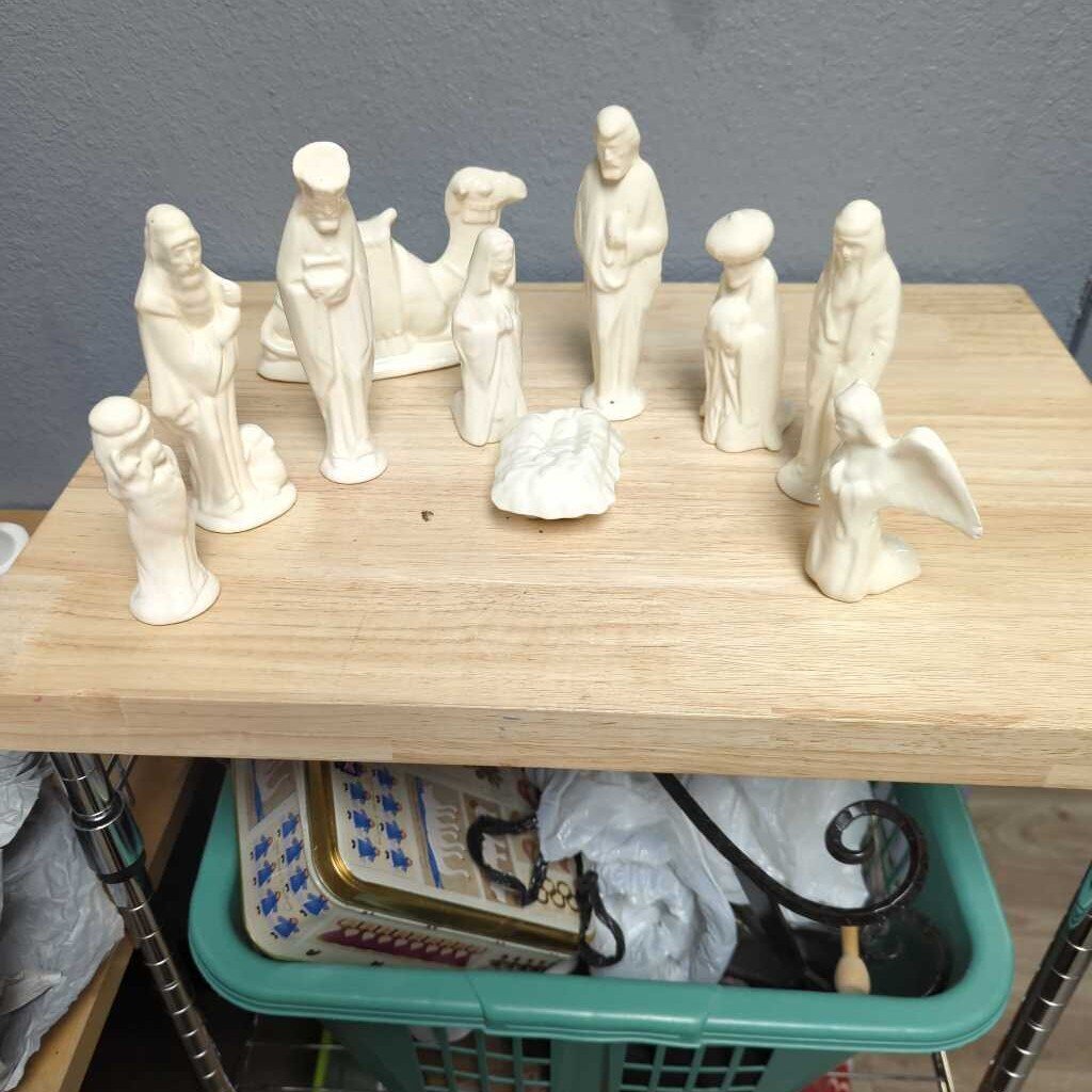 artist signature on bottom Ceramic Nativity Set 10 pc. white