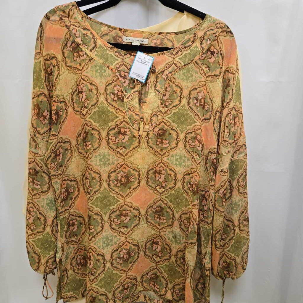 Banana Republic Blouse L Green/pink/tan.