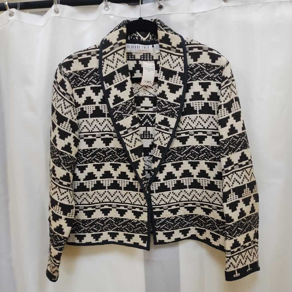 Long sleeves, no closure, collar, southwest design, falls to waist.