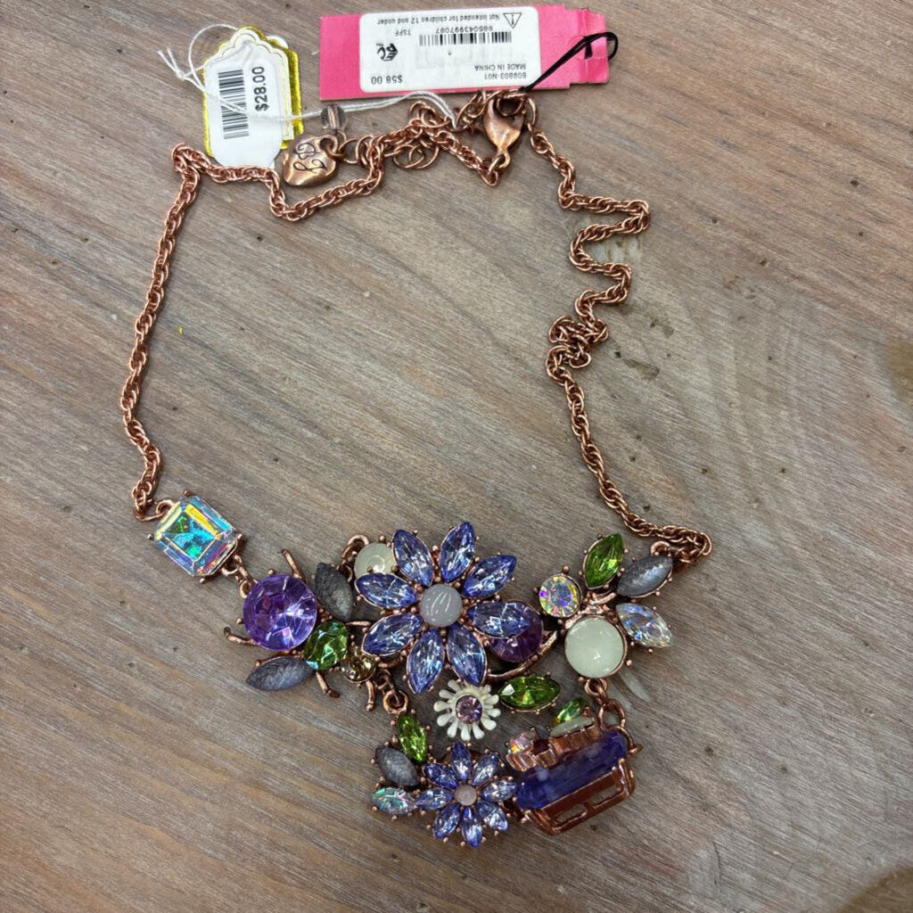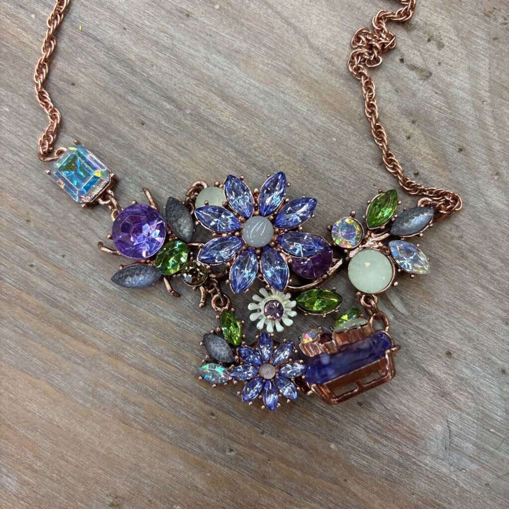 New with tags , rose gold twisted chain , blue crystals, green crystals flowers , lavender flower