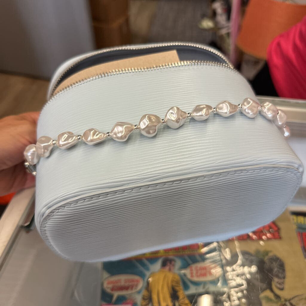 Sky leather small oval side zipper crossbody bag, strap is in bag, new.