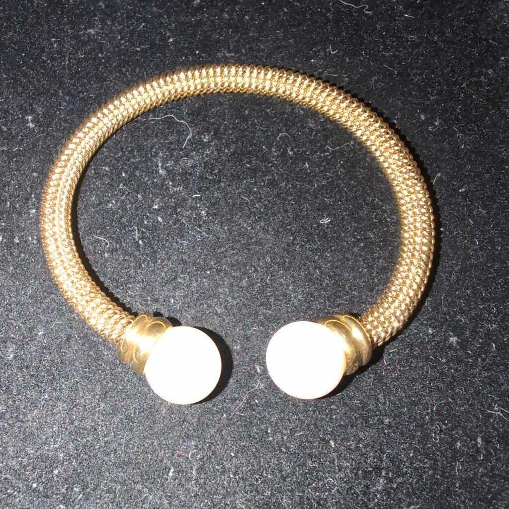 Bracelet Average Size Goldtone, Pearl Finials