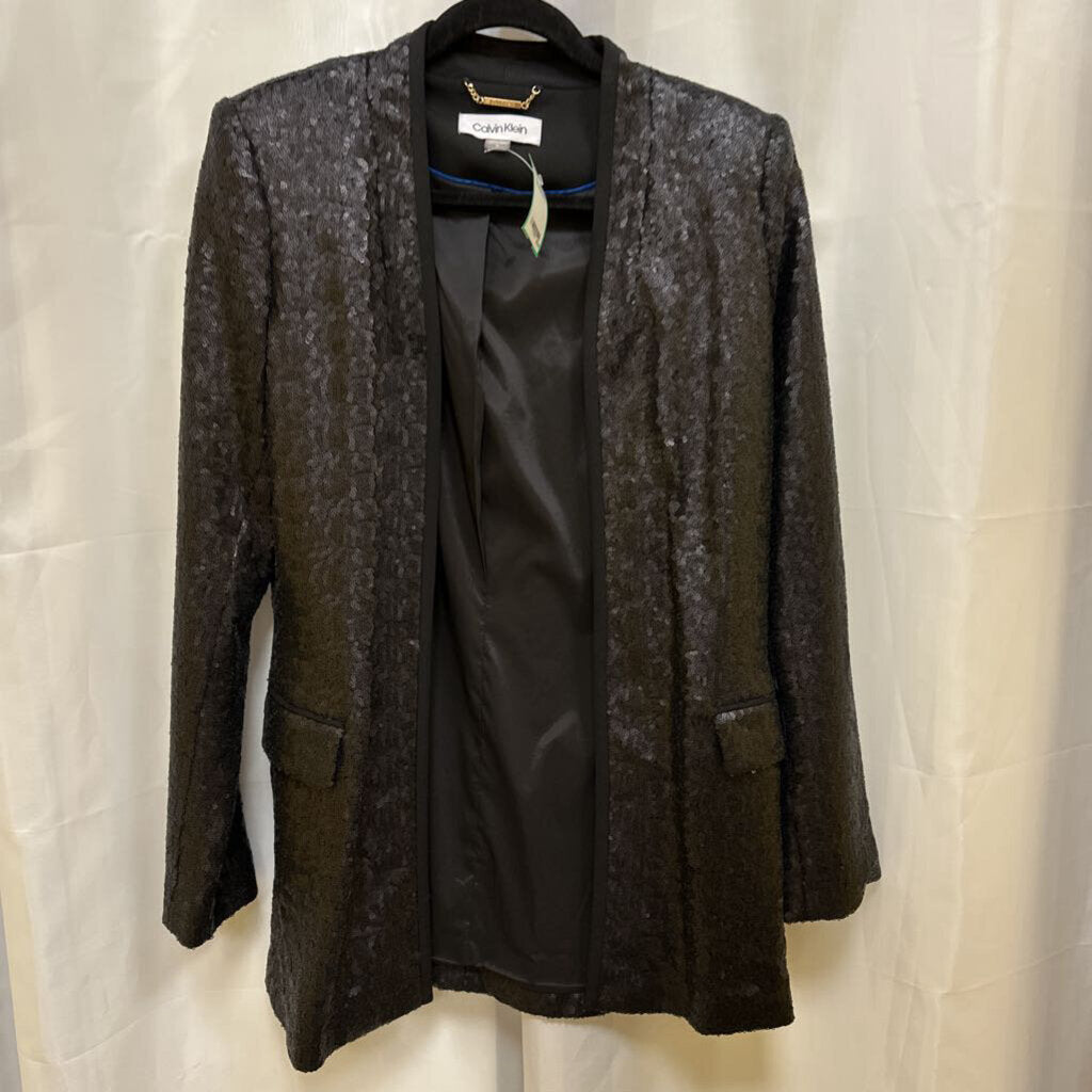 Long sleeve matte all over sequin open front jacket with flap front pockets.