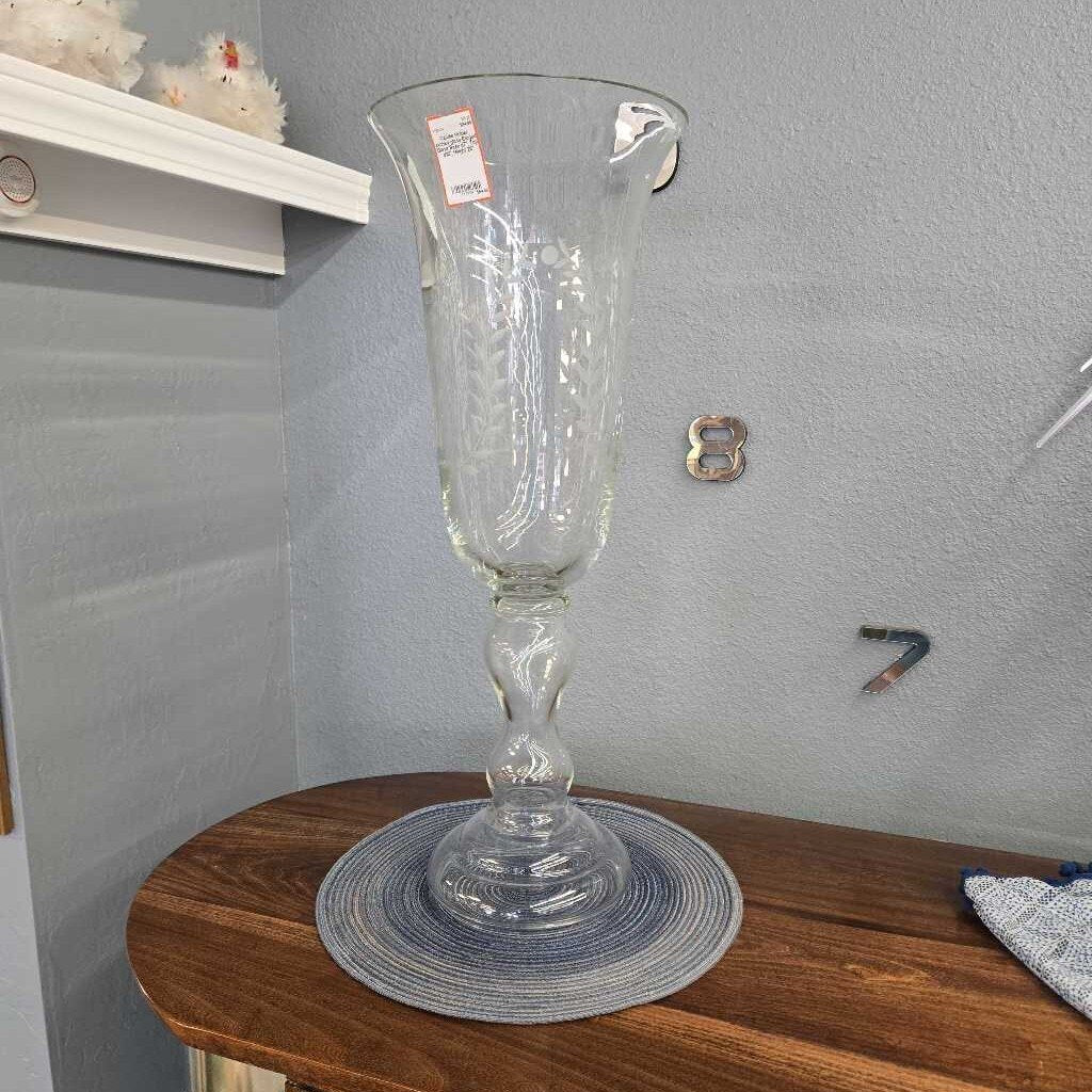 Candle Holder etched glass Base d7", Top d10", Height 26" Etcged Glass