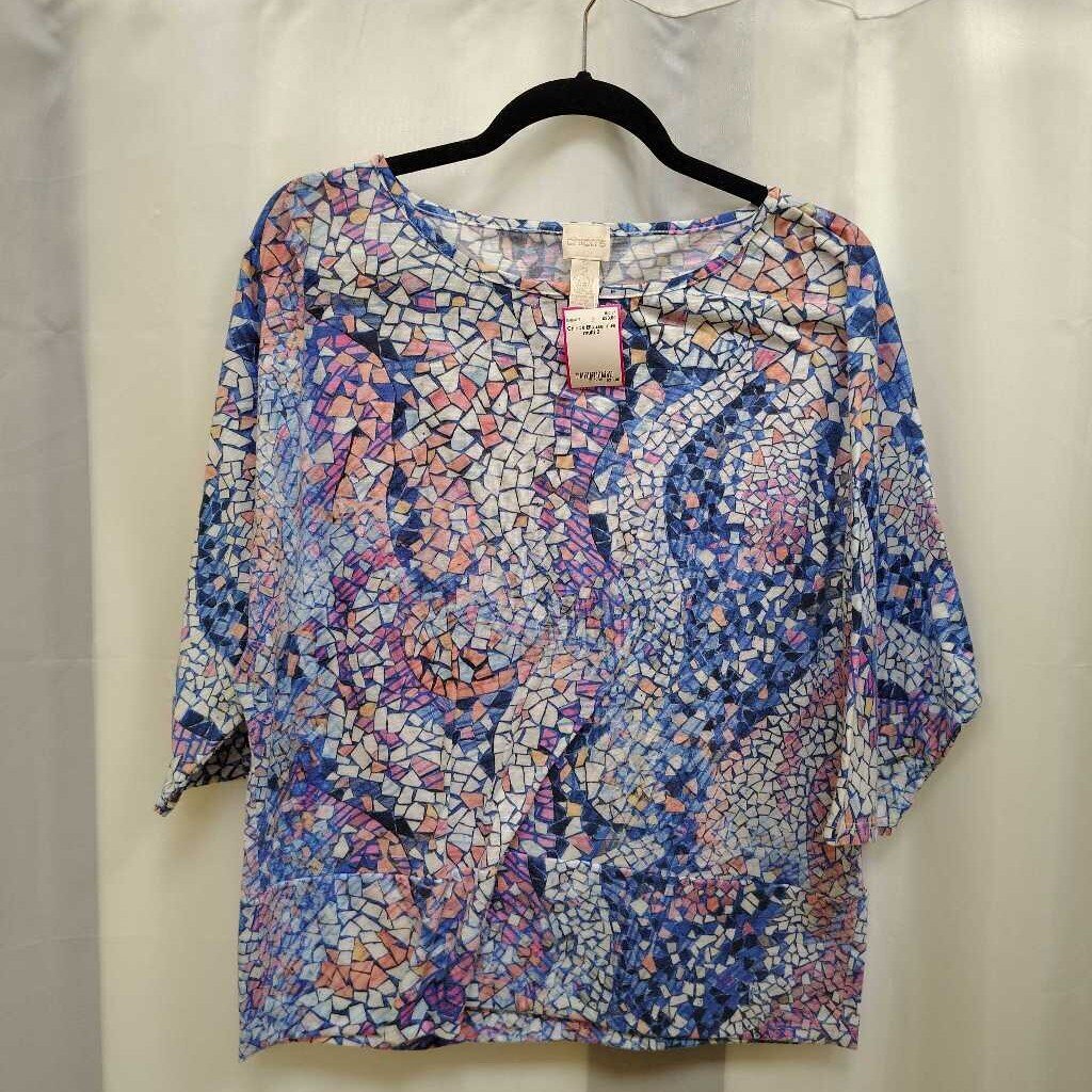Mosiac print polyester with 3/4 sleeves and boat neck.