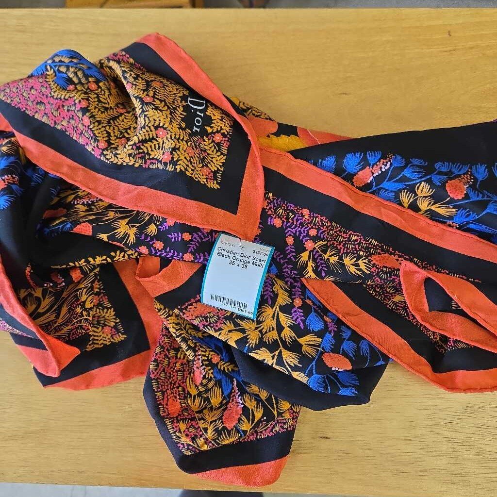 Christian Dior Scarf 35 x 35 Black Orange Multi