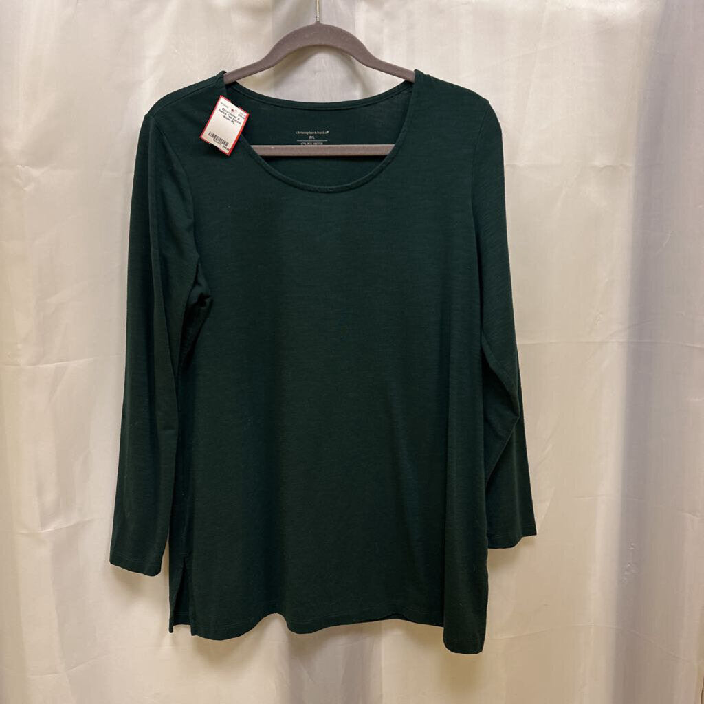 Long sleeve pull over knit tee with side slits and scoop neckline.