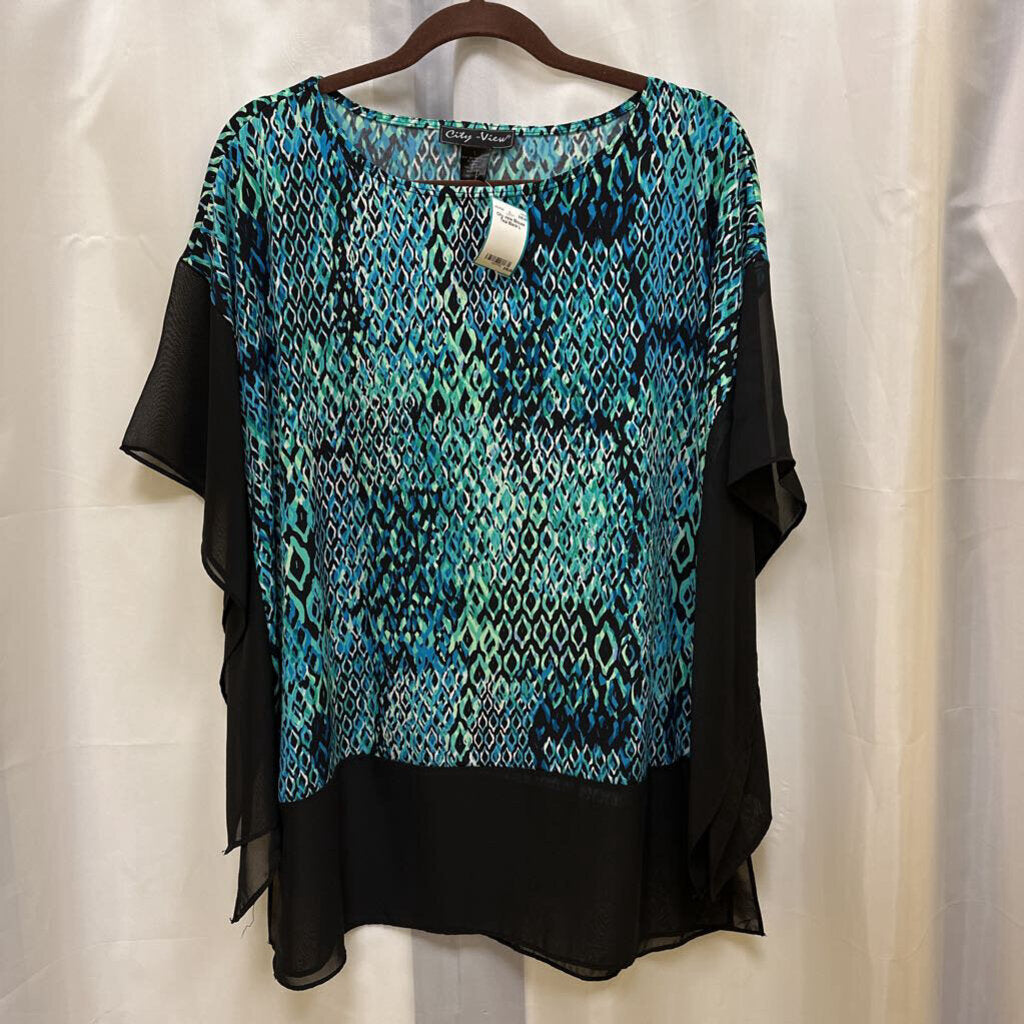 City view Blouse L Teal Black